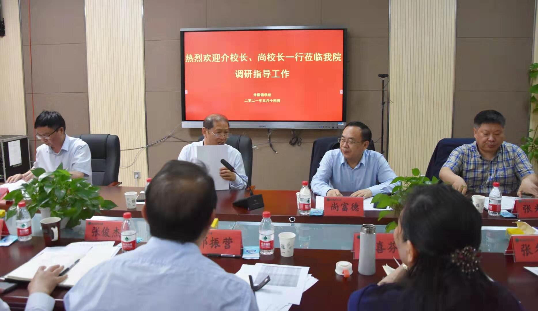 介晓磊对外语学院已经取得成绩给予充分肯定,就学院的事业发展提出具体要求:一要以党史学习教育为契机,办实事,开新局,高位谋划“十四五”规划,明确任务书,列出时间表,画出路线图,落实责任状,以党建工作为引领,以切实可行的举措保障学院高质量发展。二要找准定位,为建设以农为特色的一流大学建设提供强有力的语言文化支撑。国际化进程要求必须加强外语教学,加强国际合作交流。学院要在推进国际化进程中,整合资源,积极融入乡村振兴等重大国家战略,凝练出特色优势语言服务方向,发挥好外语人才优势。三要进一步解放思想,更新观念,抓住机遇推进外语教学改革。用新文科的标准重新审视外语教学,运用现代信息化、智能化技术,改革外语教学的场景、方法、手段、设备,提高教学效果。要在教学实践中,跨界融合,优化教学资源,学科交叉,开展全域、全景式教学,做好“外语+”的教学。要改革考评机制,探索双院协同,培养高素质、创新性、复合型、应用型人才模式。