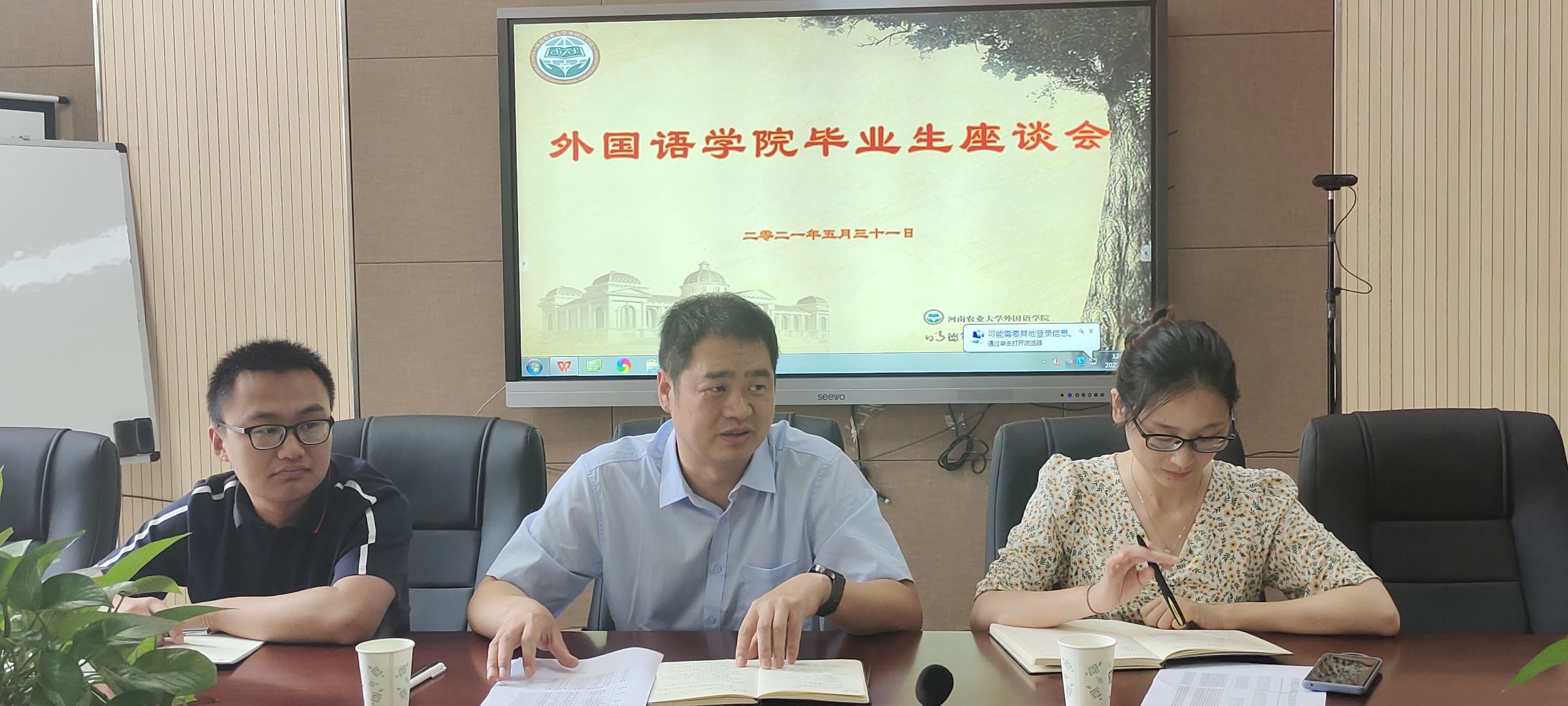 于龙子湖校区繁塔楼A320会议室召开了毕业生座谈会。党委副书记王启佩、团委副书记陈桃、冯超和辅导员穆君怡携17级班长支书和主要学生干部参会。