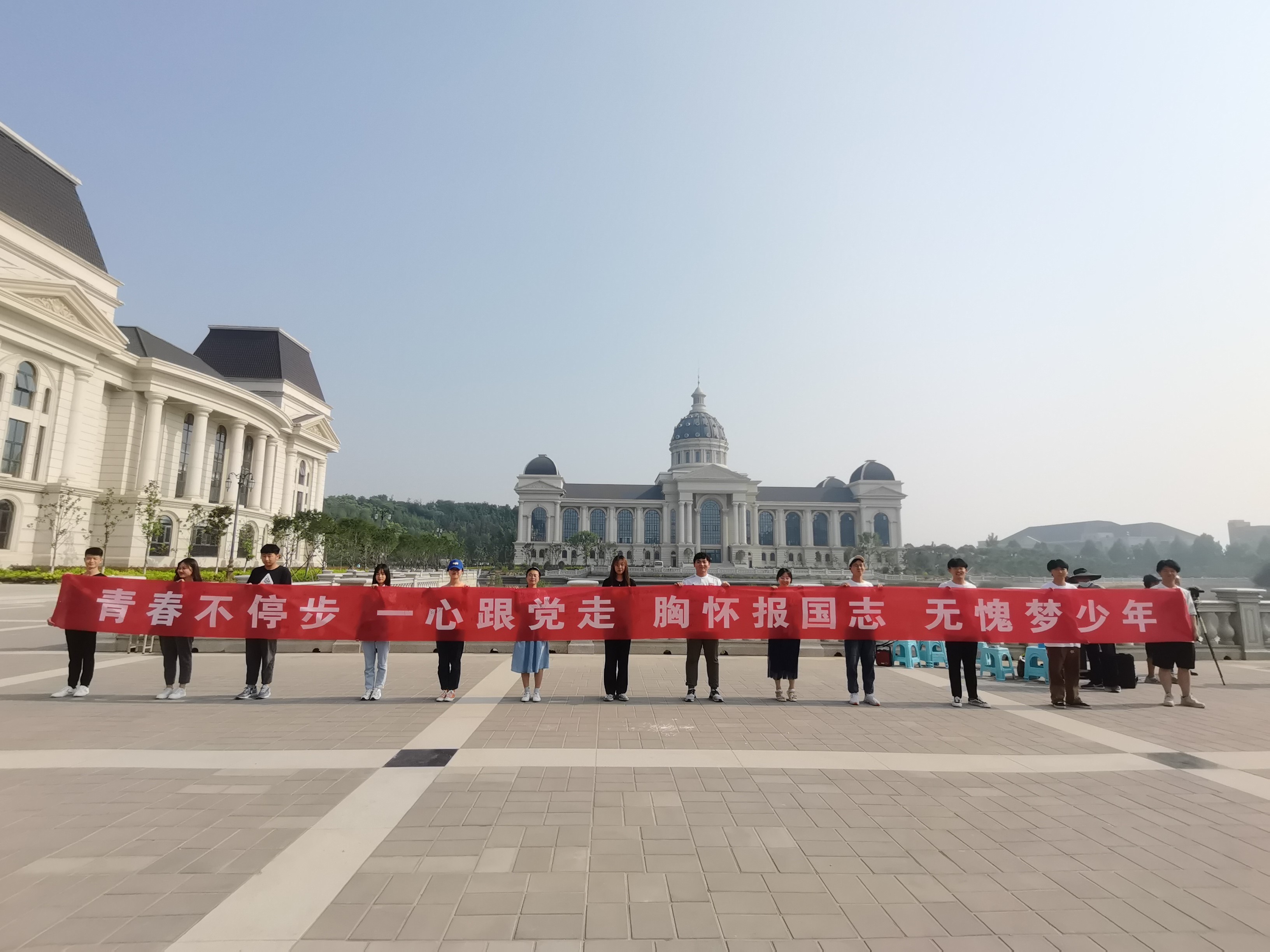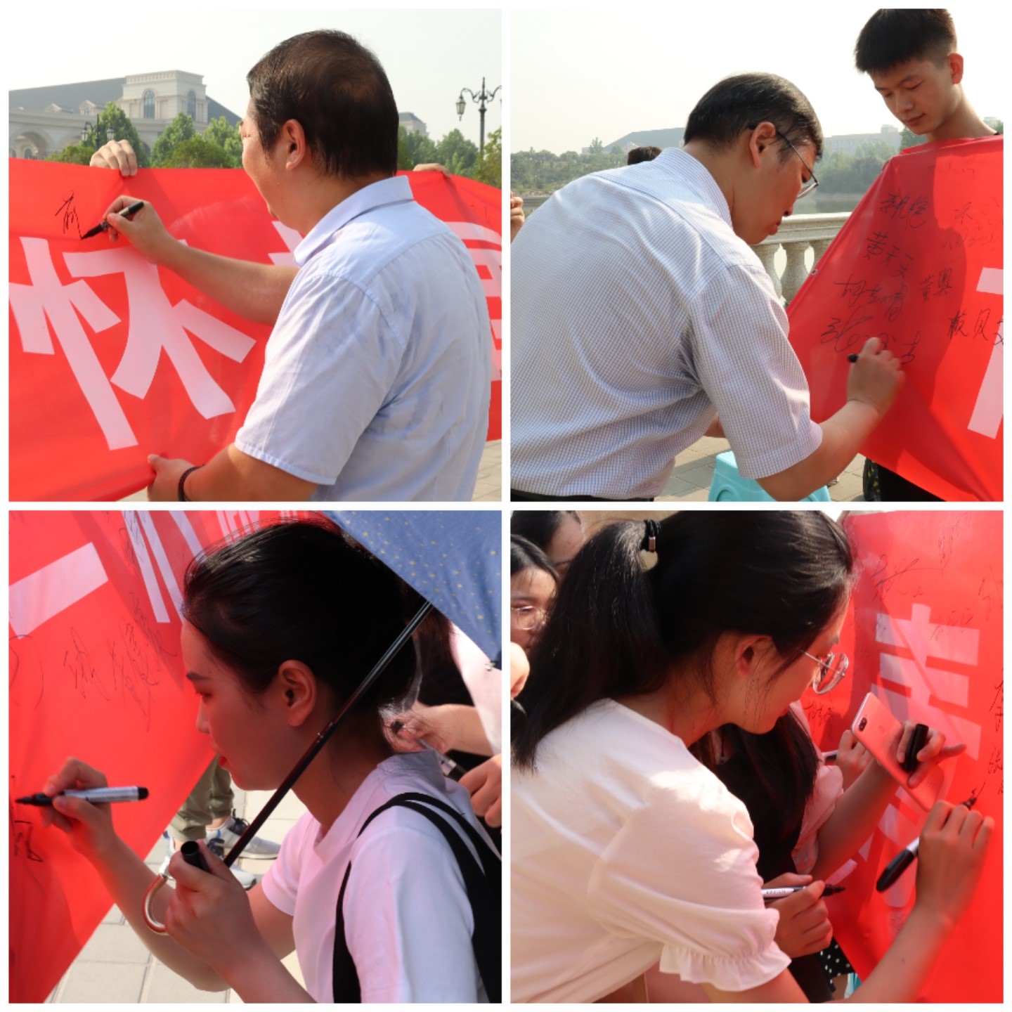 活动伊始,伴着清晨第一缕阳光,全体毕业生高声吟唱《绿色颂》和《让我们荡起双桨》,歌声嘹亮却又婉转悠扬,既包含了对母校的不舍与留恋,又充满了对未来的无限期待,同时也道出了对奔赴海角天涯、践行使命梦想的坚定信心。随后,集体照拍摄正式开始。镜头里的他们洋溢着笑容,一声声快门声落下,一张张画面定格,记录了这一刻的美好。阳光挥洒,青春正好,这些照片会成为他们珍贵的回忆。活动最后举行了毕业生横幅签字仪式,带着自信从容毕业生们洋溢着青春和活力,他们在写有“青春不停步,一心跟党走,胸怀报国志,无愧梦少年”的横幅上签下了自己的名字。毕业生纷纷表示,在未来,他们会带着母校的祝福,坚守初心与信念,追逐新的梦想,努力书写精彩的人生华章。