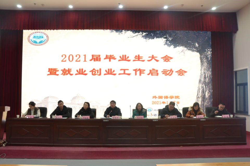 于1月7日下午4点在龙子湖校区繁塔楼大教室一召开了“2021届毕业生大会暨就业创业工作启动会”。院长张俊杰、院党委副书记王启佩、副院长张卫东、英语系主任赵凤玲、日语系主任邱丽君、院党政办主任郝晓峰、院团委副书记陈桃、冯超携2021届全体毕业生出席了此次会议。