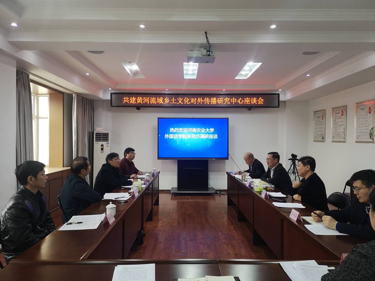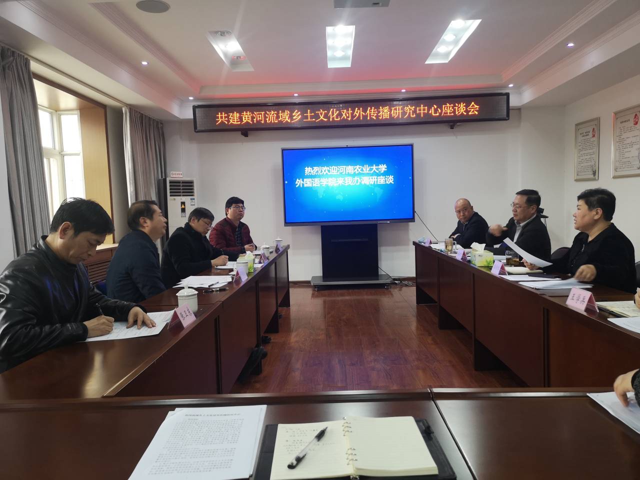 党委书记邓振营、院长张俊杰带领院班子成员及翻译中心(MTI)负责人赴郑州市委外办考察交流,洽谈校地合作事宜。郑州市委外办主任潘新红、副主任张树忱及相关负责人等参加了会谈。