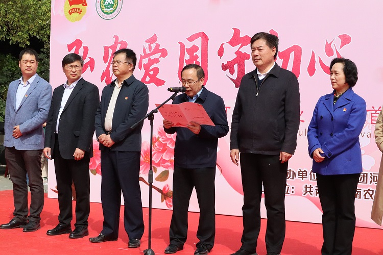 首届“弘农爱国守初心,砥砺奋进跟党走”海棠文化节暨清明礼仪展活动在龙子湖校区一餐厅广场隆重开幕。校党委副书记、工会主席李成吾,副校长尹新明、副校长尚富德等莅临现场参观指导,校党委宣传部、学生工作部、校团委、成人频道