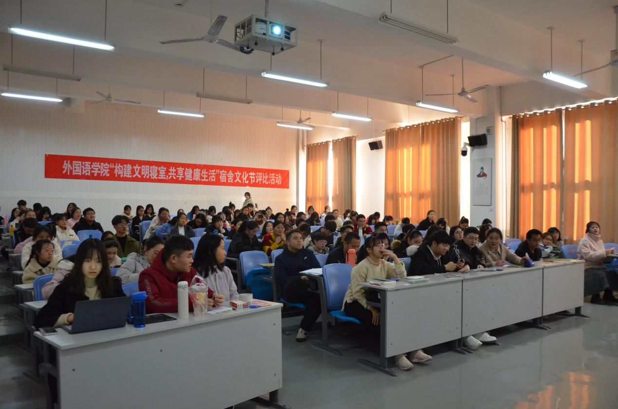 于龙子湖校区繁塔楼C206教室举办以“构建文明寝室,共享健康生活”为主题的宿舍文化节评比活动。学院主要学生干部出席了此次活动并担任评委。