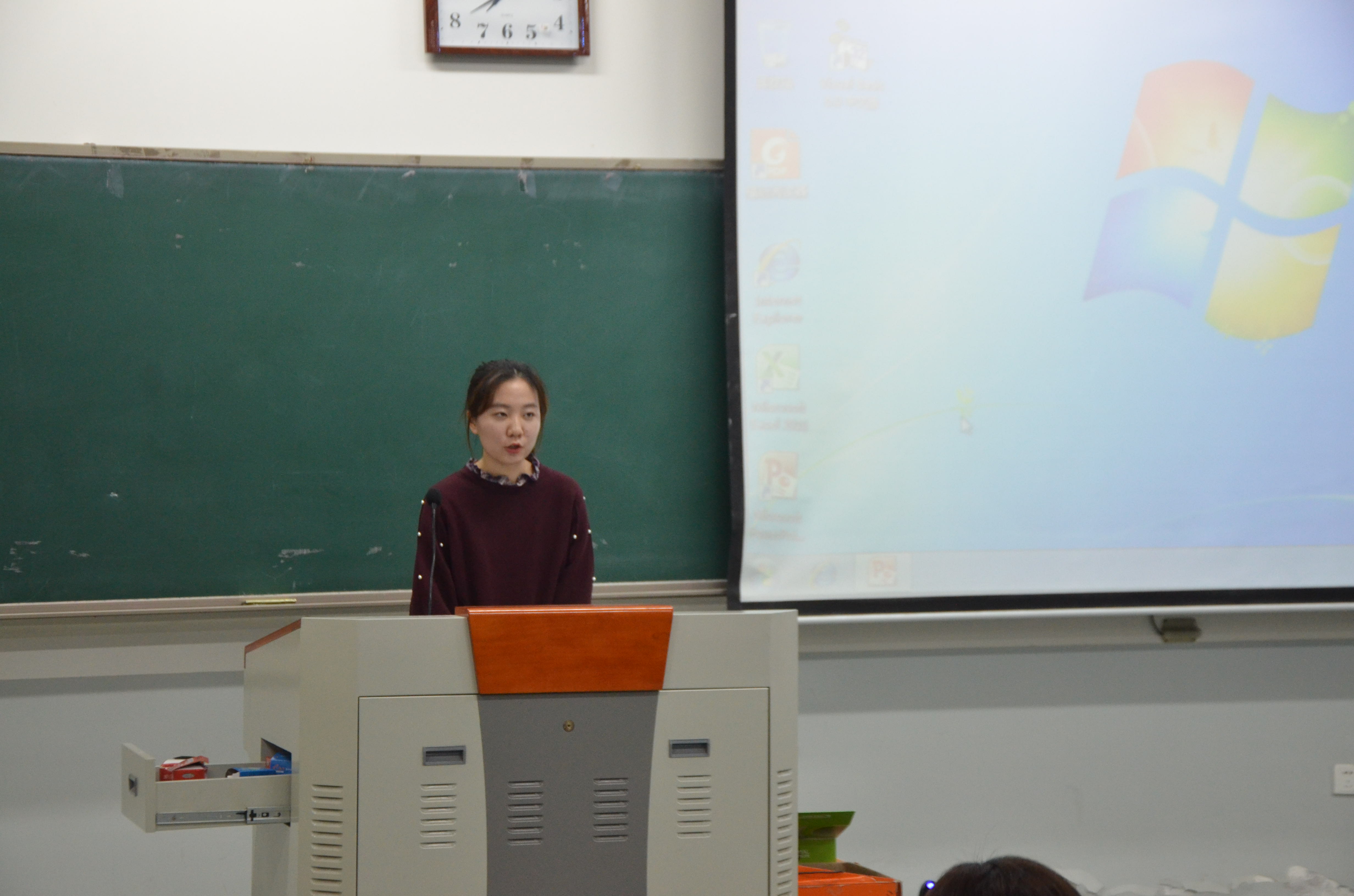 本次评选本着公平、公正、公开的原则,分为个人陈述和评委投票两个环节。会议伊始,主持人宣布比赛流程并宣讲规则。之后,各个参选者依次分别从学习、工作、生活等方面展开三分钟陈述。参选者们语言自然流畅,仪态端庄大方,或畅谈自身丰富的学生工作经验,或展示自己所获优异成绩。其中,17级英语四班的张丹丹分享了她参加社会实践的经历。在社会实践中,她开阔眼界、锻炼自我、提升自我,并表示将继续奉献自己,不忘参与学生工作初心,全心全意为成人频道