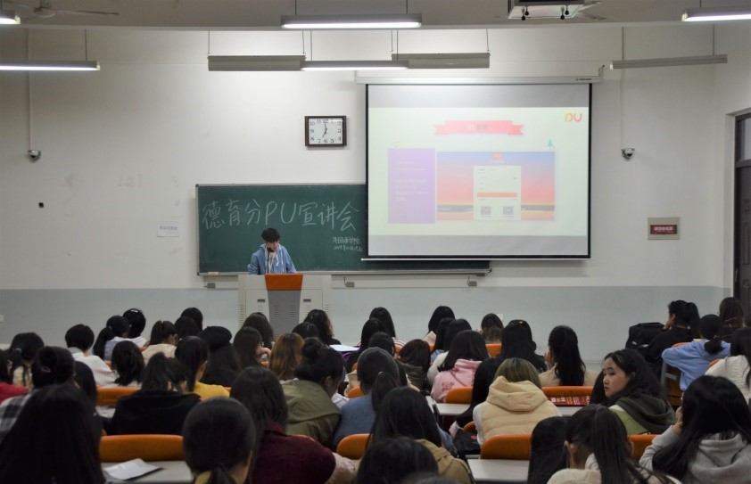 本网讯(审稿:李沛 供稿:梅如意)为进一步落实“第二课堂”成绩单制度,使2019级学生熟练使用“PU口袋校园”,调动其自主参与活动的积极性,10月15日晚七点,学院于龙子湖校区繁塔楼C402、C404教室举办第二课堂培训及德育分细则宣讲活动。2019级全体学生参与了此次活动。