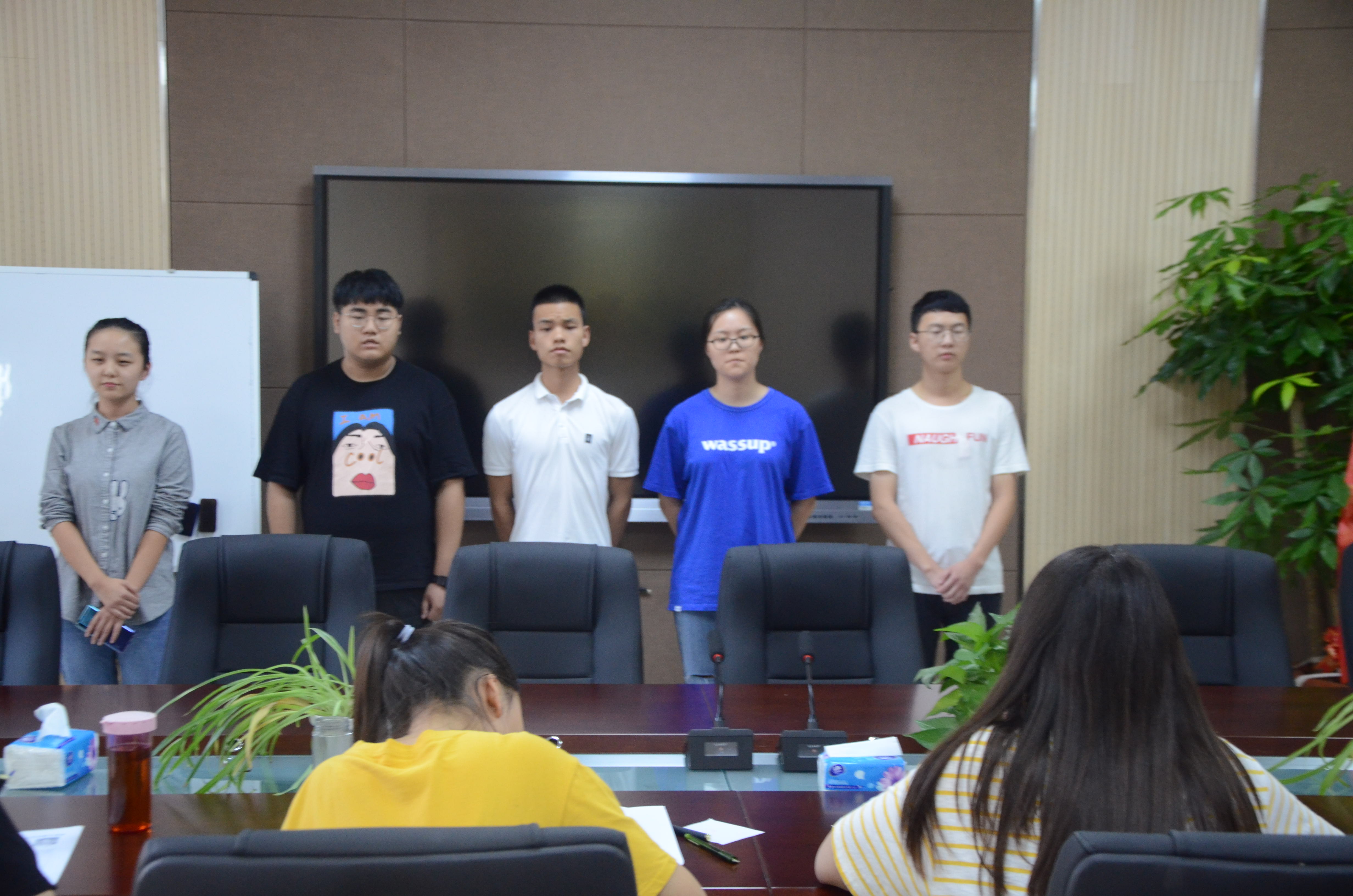 于龙子湖校区繁塔楼A320会议室召开了2019级迎新志愿者评选大会。团委书记李沛、辅导员闫彬彬、焦雪猛携2018级迎新志愿者出席评选并担任评委。