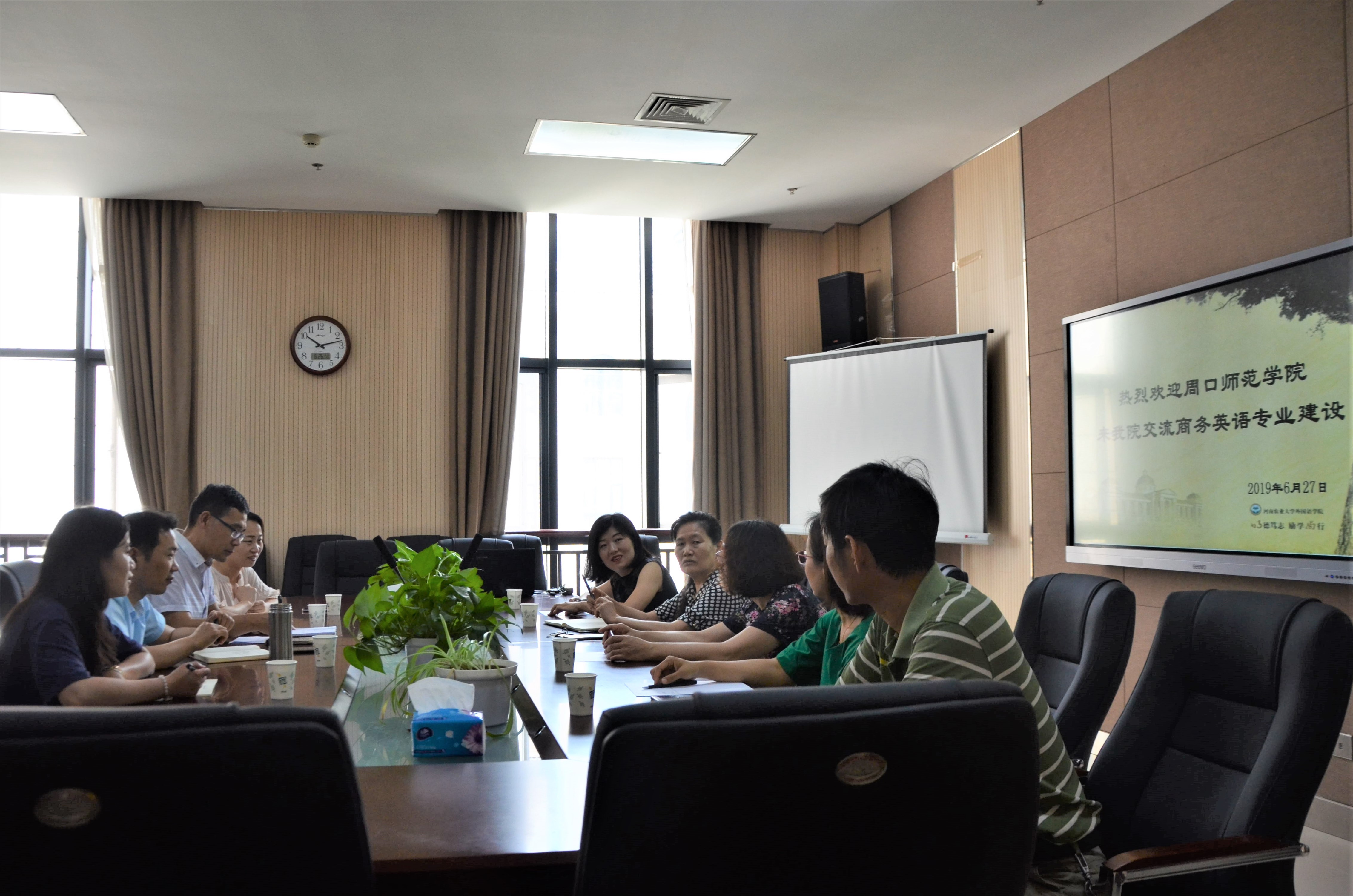 本网讯(审稿:王颖 供稿:梅如意)为推进商务英语专业建设,修订完善人才培养方案,6月27日上午10点,周口师范学院教研室主任雷超教授携骨干教师康凯、郭晶晶、刘静赴成人频道
