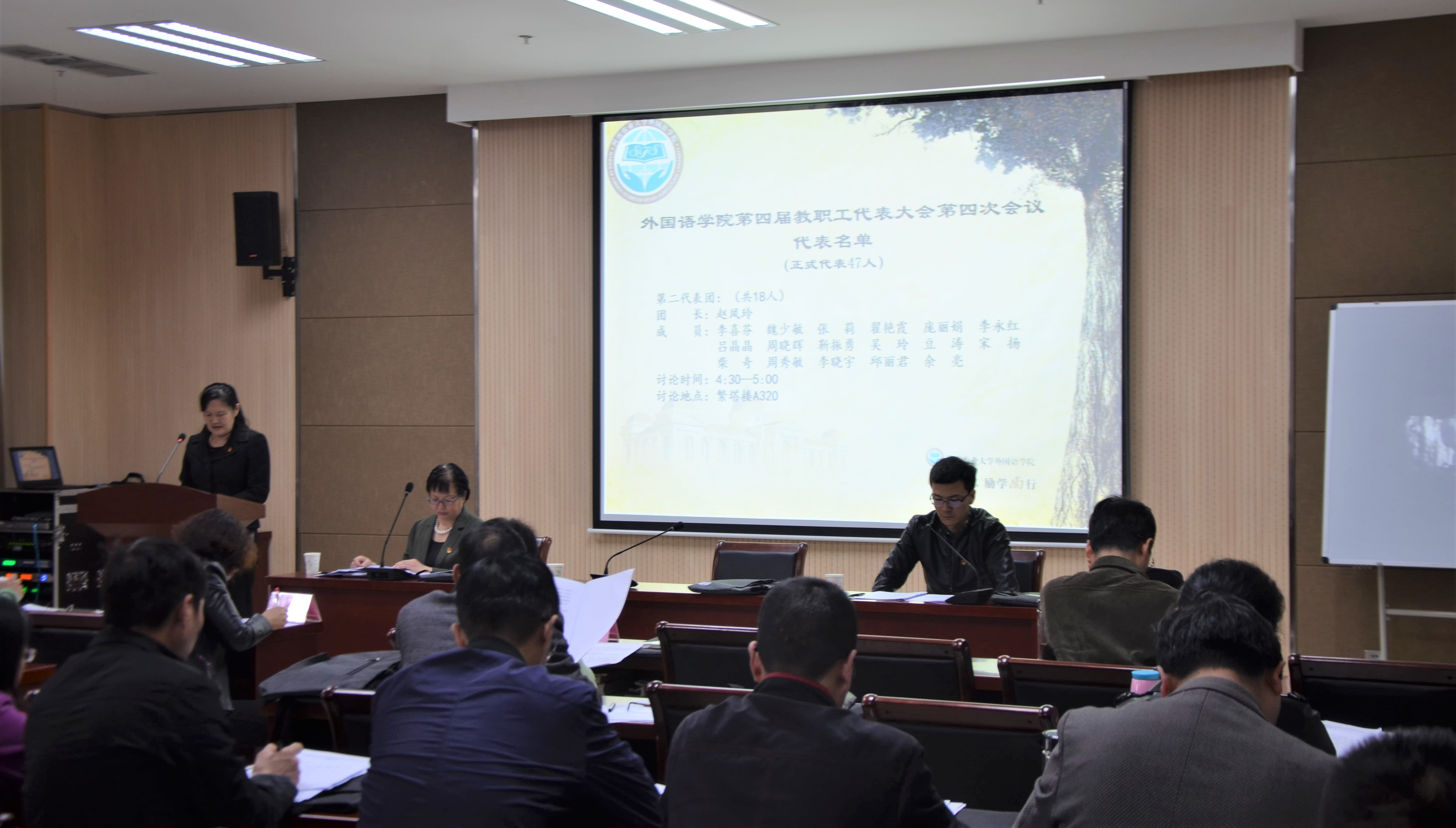 于繁塔楼A324教室召开了第四届教职工代表大会第四次会议。学院领导班子成员携教职工代表参加了会议,本次会议由副院长龙晓玲主持。