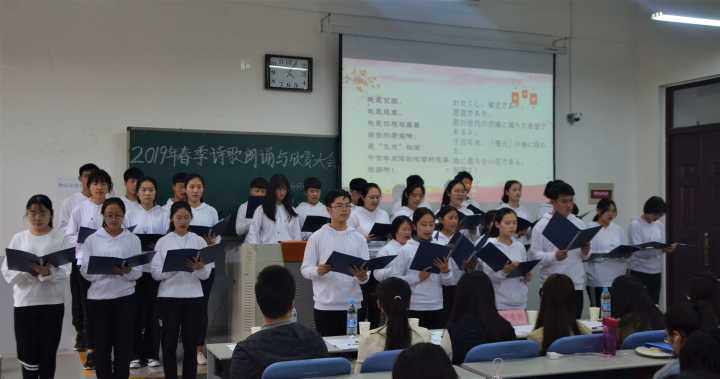 学生学习热情,提高其综合素质,4月2日下午两点半,学院于龙子湖校区繁塔楼C104教室举办了以“欢庆建国七十周年暨五四运动100周年”为主题的春季诗歌朗诵与欣赏大会。此次活动由成人频道