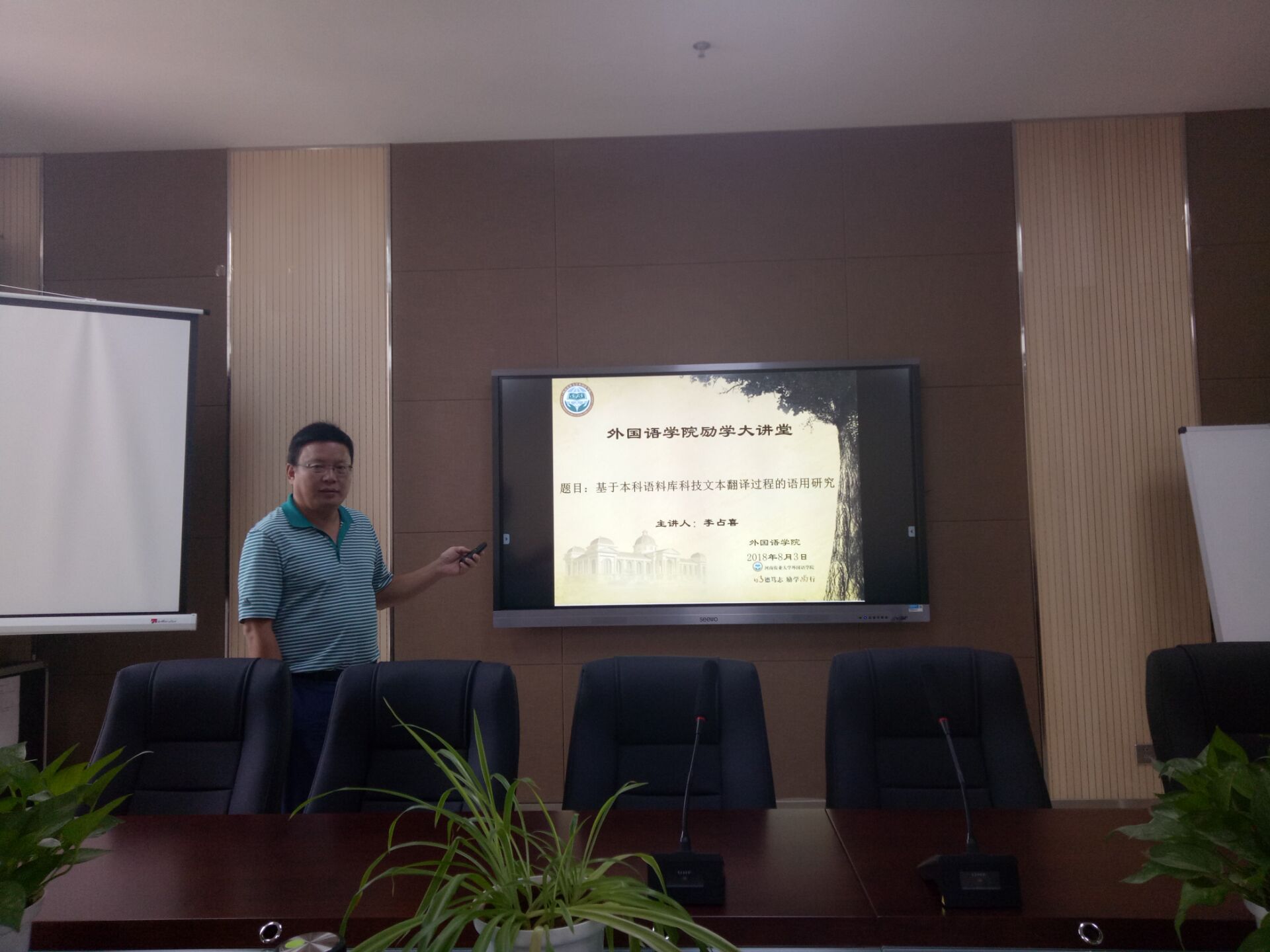 李占喜教授在繁塔楼A320做了以“基于本科生语料库科技翻译过程的语用研究”为题的讲座。院长李喜芬教授,副院长张俊杰教授、学院MTI中心副主任马孝幸老师、学院研究生、本科生等共同聆听了本次讲堂。本次讲堂由张俊杰主持。