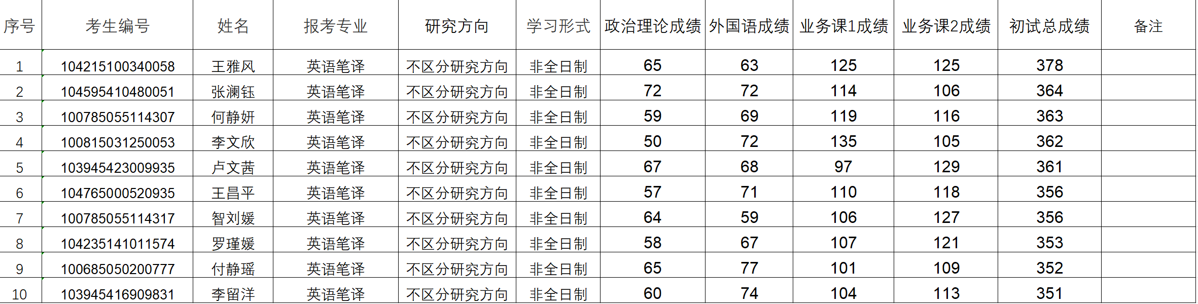 成人频道 英语笔译专业2025年硕士研究生复试名单公示(调剂)