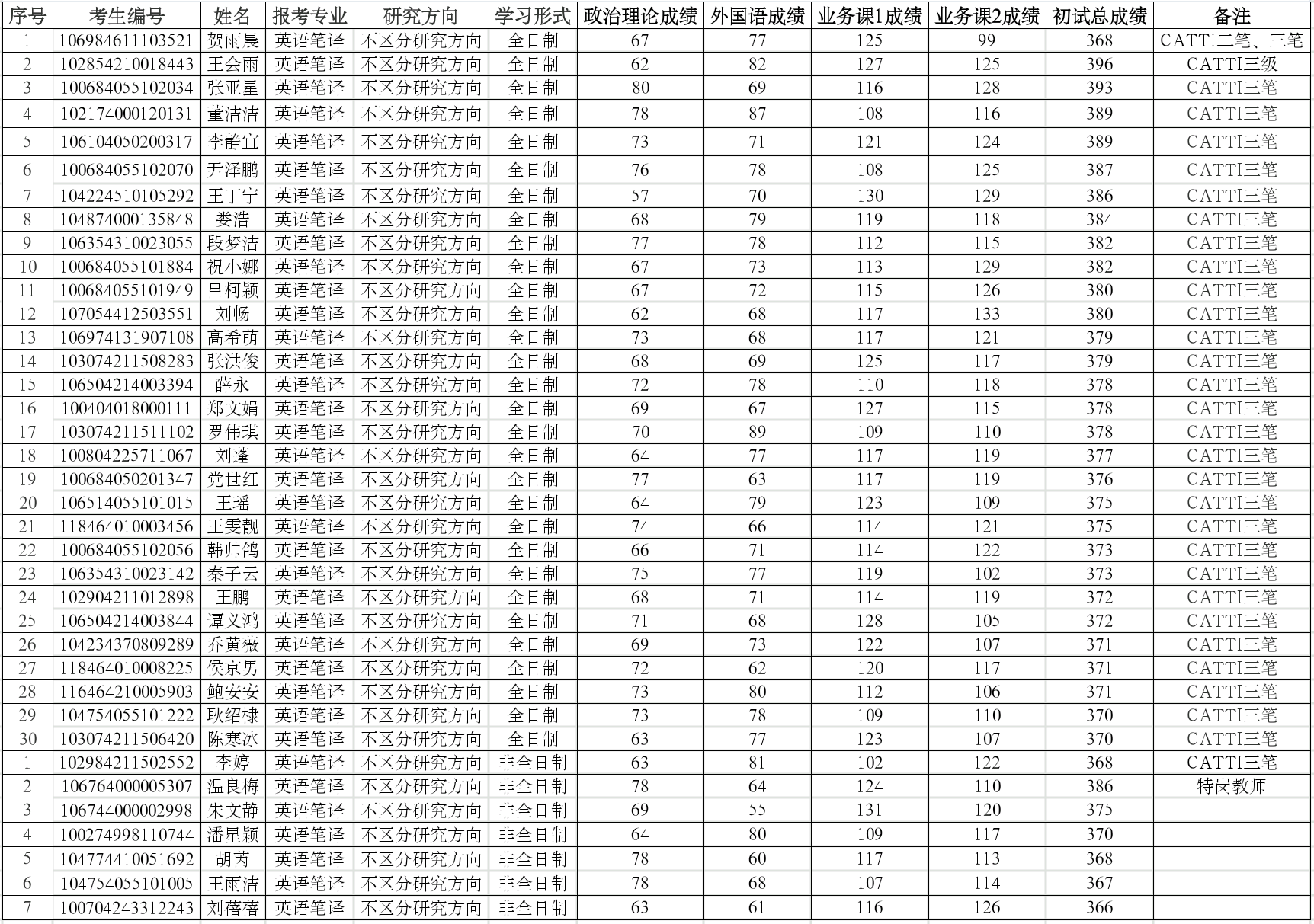 成人频道 英语笔译专业2024年硕士研究生复试名单(调剂)