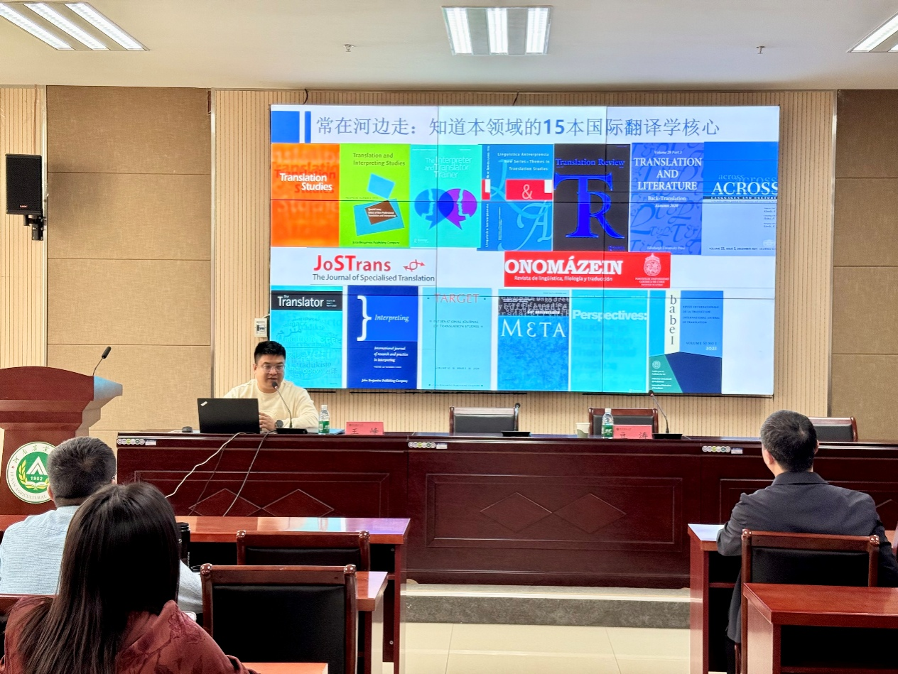 王峰教授以国际核心期刊资源为切入点,系统梳理了15本被SSCI、A&HCI检索的翻译研究类期刊,逐一解析其核心发文范围、选题偏好与学术定位。随后,他介绍了翻译研究领域常用的国际数据库,详细讲解了文献检索、筛选与获取的实用方法。