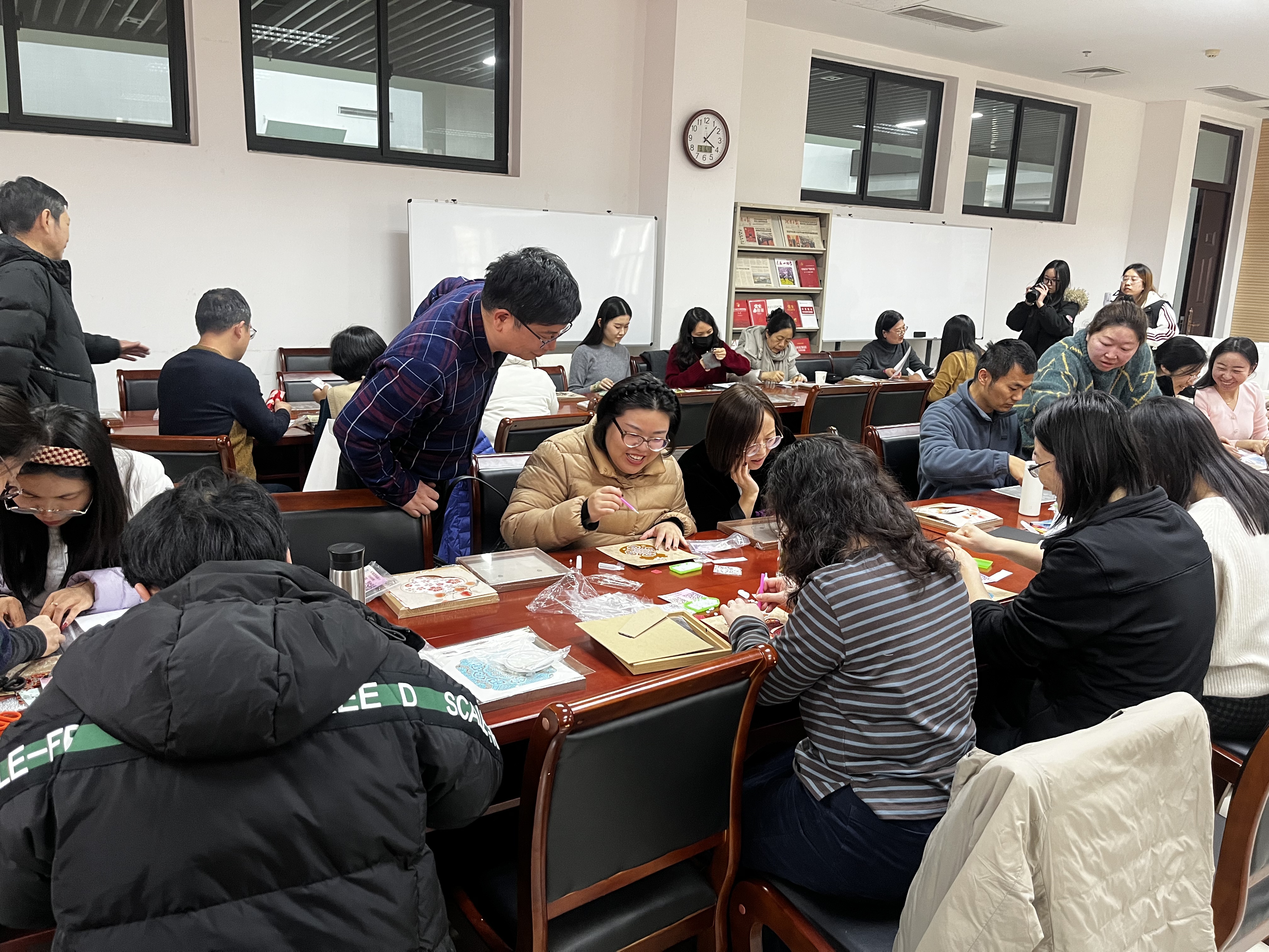 于2026年3月6日下午4点,在繁塔楼A324室举办“宋锦如画 巾帼如花”宋锦珍珠画手工体验活动。学院女教职工欢聚一堂,在指尖非遗中感受传统美学,共度温馨雅致的节日时光。