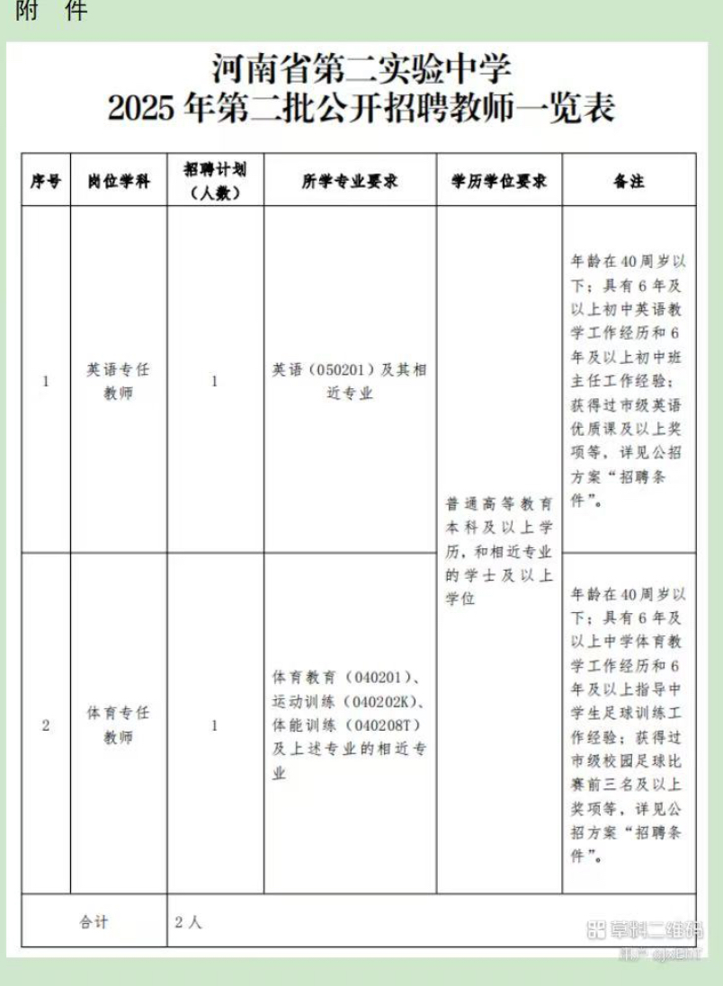 (2)持有中学英语教师资格证和中小学二级英语教师及以上专业技术职务任职资格证