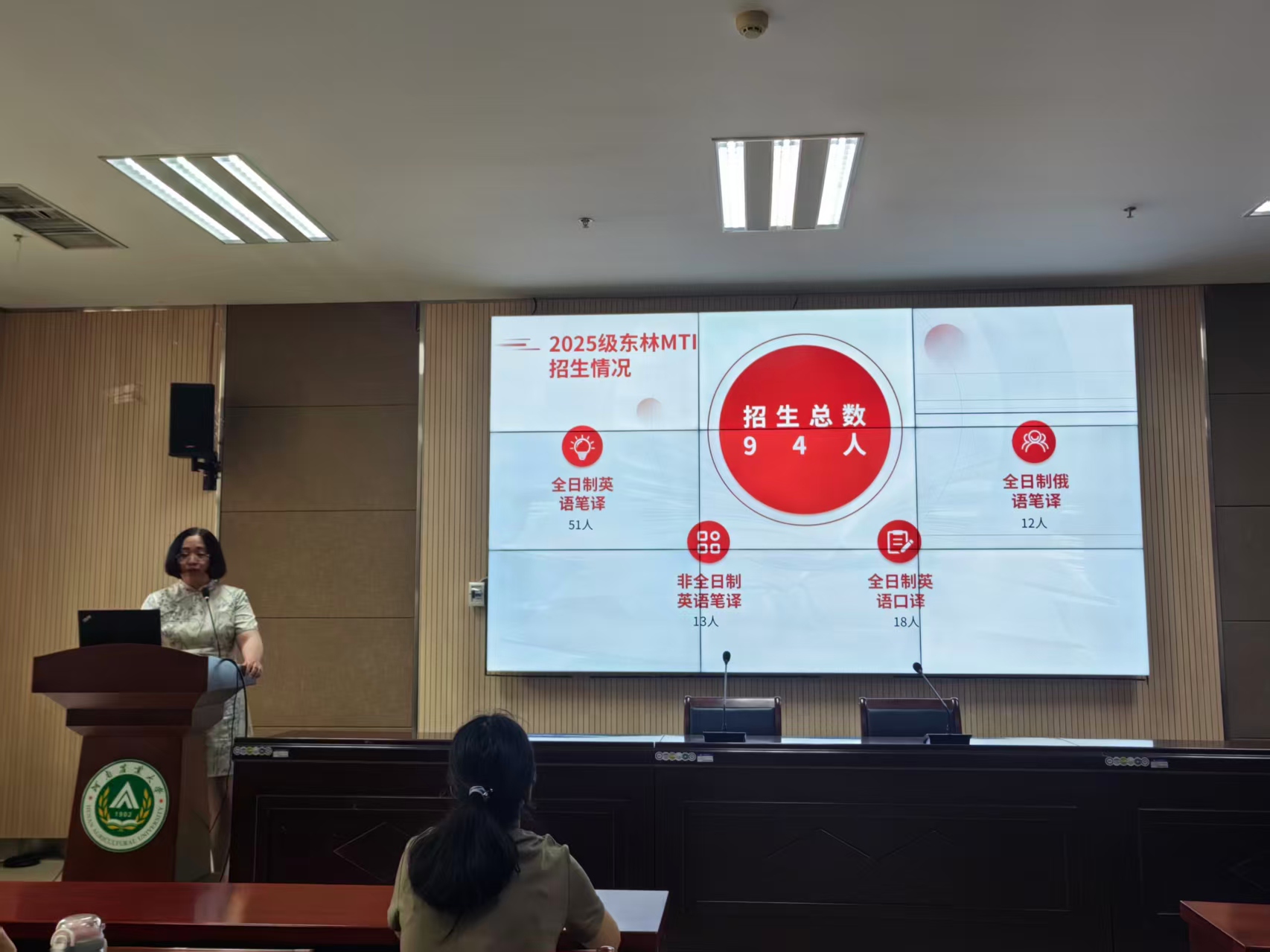 宣讲中,东北林业大学成人频道 齐艳副教授详细介绍外国语言文学一级学科(含英语、日语、俄语语言文学及外国语言学及应用语言学方向 ),以及翻译硕士专业学位授予点(英语笔译、口译,俄语笔译等 ),聚焦英语与翻译相关方向,从学科特色到培养模式,全方位解析升学路径,为同学们答疑解惑,指引专业成长方向。