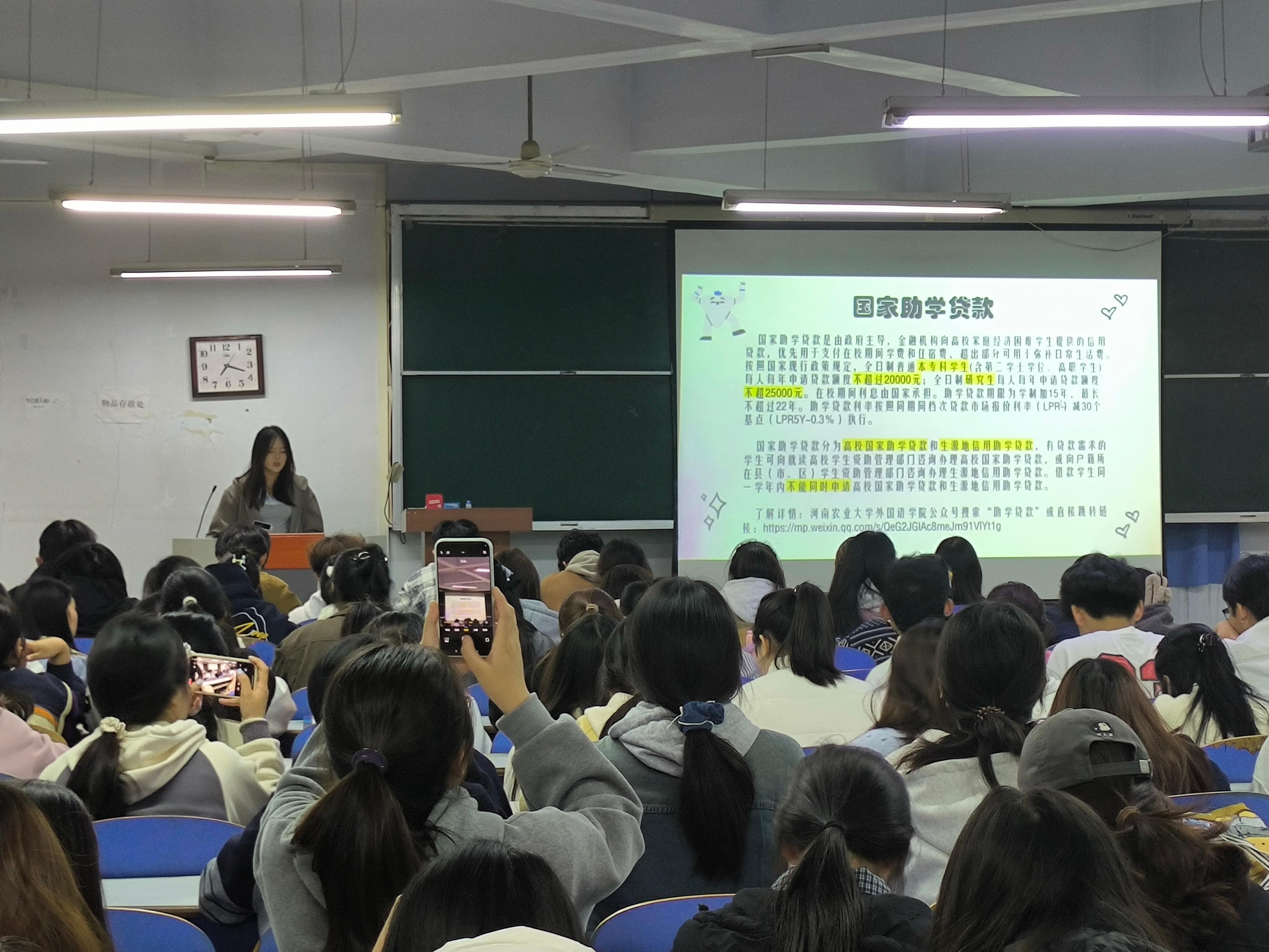 随后,田佳瑶详细介绍了学校的勤工助学岗位设置和申请流程,鼓励家庭经济困难的学生积极参与勤工助学,通过自身努力改善学习和生活条件。