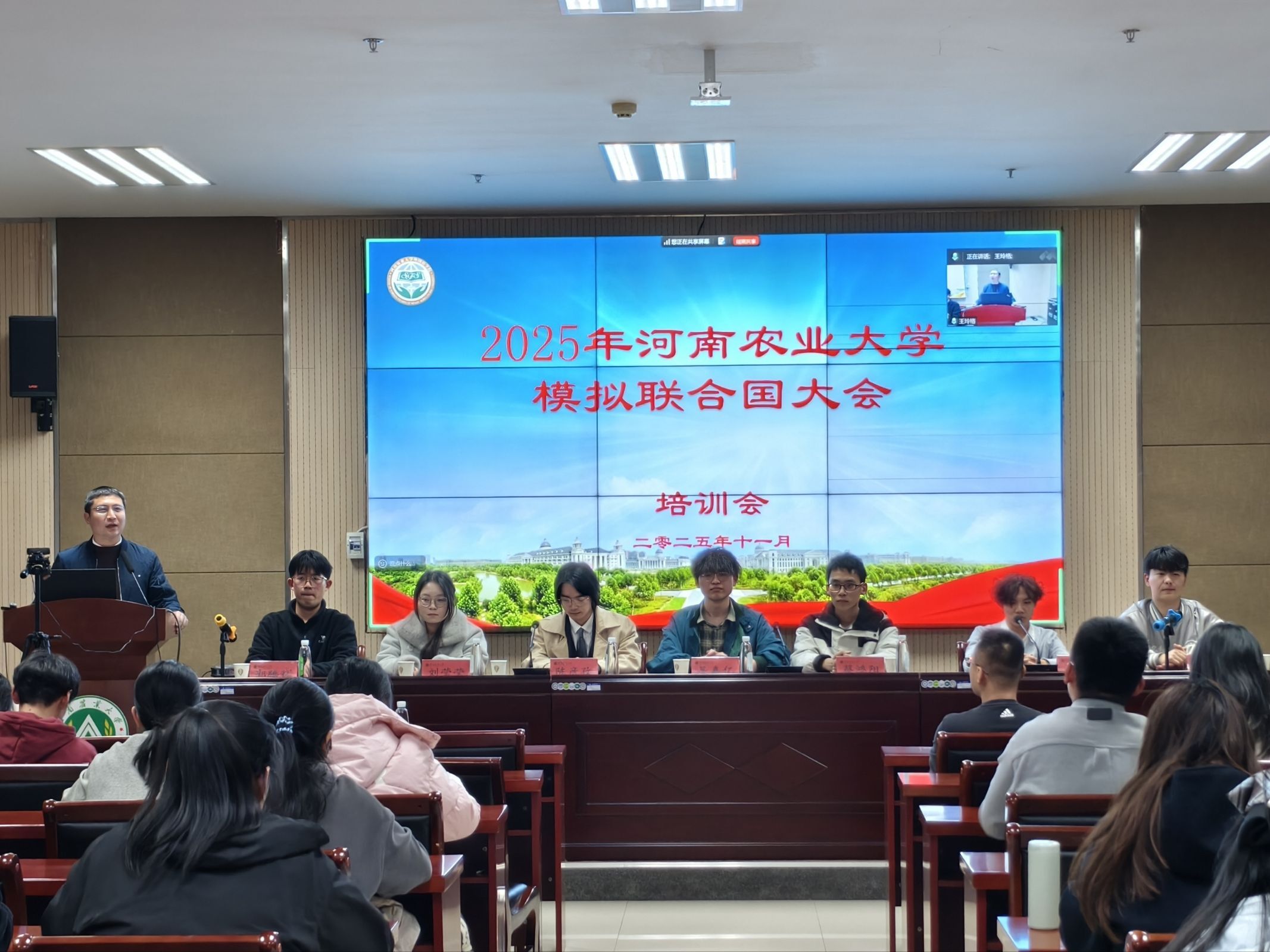 本网讯(审稿:王燕萍 供稿:侯彦冰 单梦梦)为帮助学生提升外语水平与学术素养,锻炼团队沟通能力,拓展国际视野。成人频道 邀请河南大学、郑州航空工业管理学院模拟联合国社团核心成员,于11月23日晚在繁塔楼A324开展模拟联合国大会交流活动。翻译系、团委相关负责人出席会议,来自全校各学院的100余名学生线上线下参加了会议。会议由翻译系主任豆涛主持。