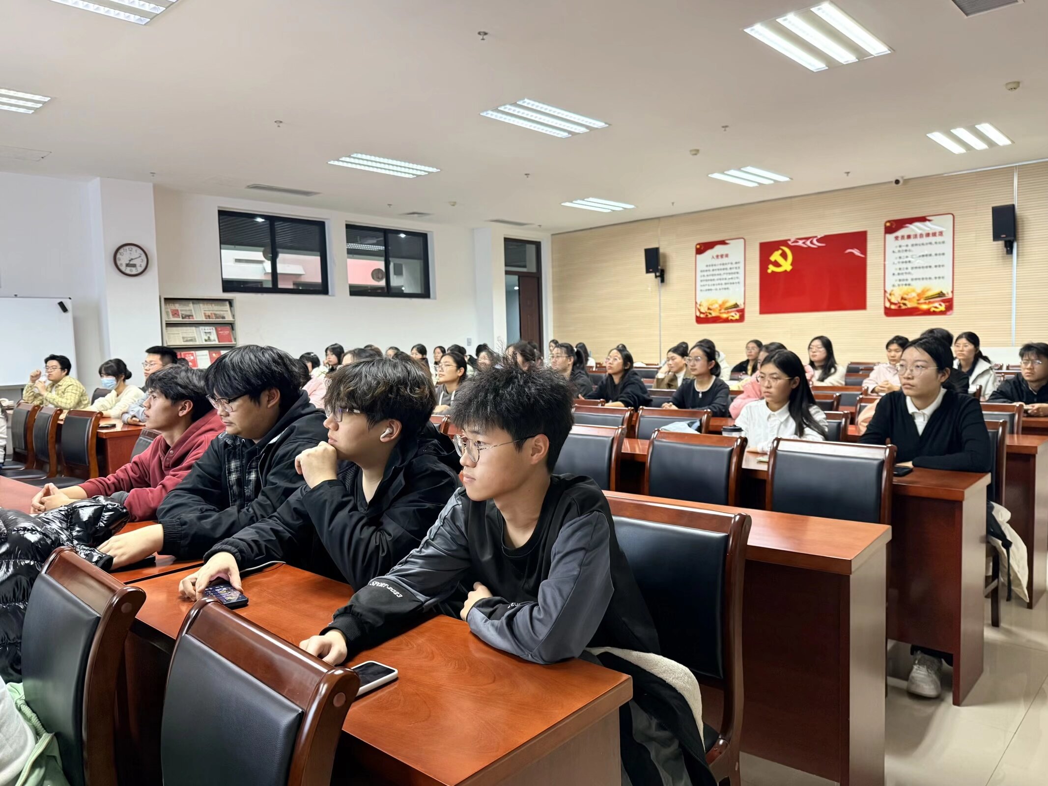 分享会上,兄弟院校代表详细介绍了模联社团架构和学术部、外联部、新媒体运营部、会务部等核心部门职责,讲解了模联活动物料筹备、社团招新、学术培训、校外交流及校内会议举办流程等内容,还分享了各类模联会议类型特点与办会经验。在互动环节,现场师生围绕模联相关问题展探讨,多位有参会经验的同学分享了参加模联活动在提升公众演讲、英语实践、资料检索及深化国际问题认知等方面带来的显著收获,现场气氛热烈,交流充分。