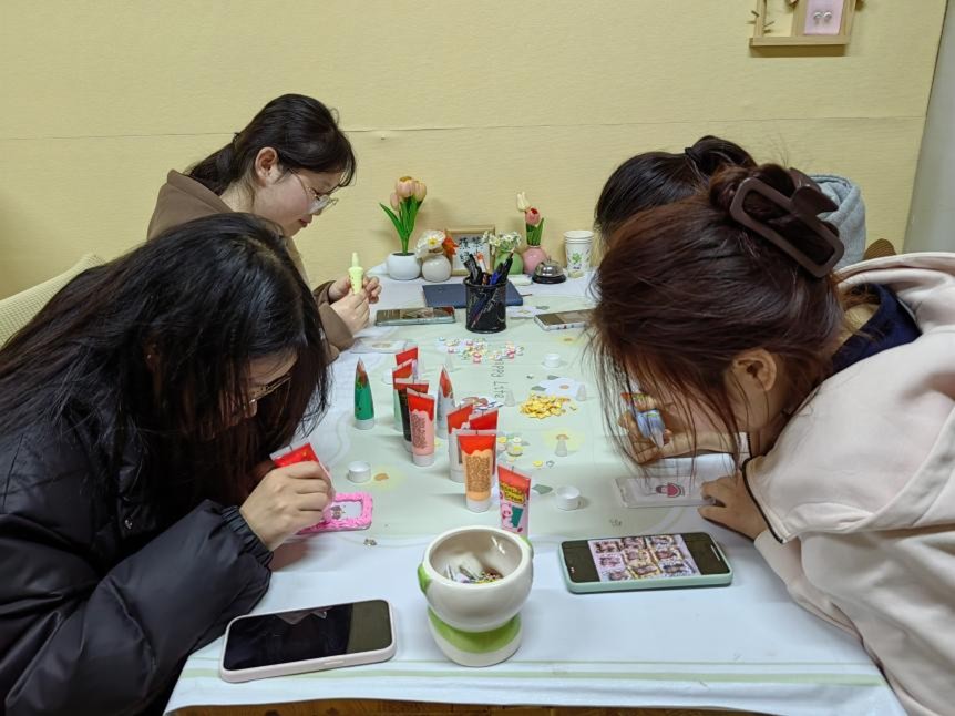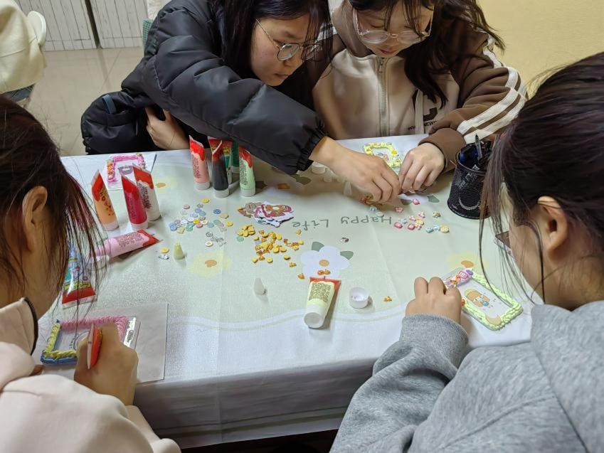 此次心理桌游活动为“卡绘心坊”奶油胶卡套DIY活动,参与人员为23级英语一班同学,并由韧心心理咨询站工作人员组织。活动伊始,工作人员将提前准备好的透明卡套、多色奶油胶套装及百余款迷你装饰配件排列整齐。随后,参与同学在琳琅满目的纽扣、食物、卡通动物形状等装饰配件中精心挑选,或参照示范图样,或即兴构思设计。