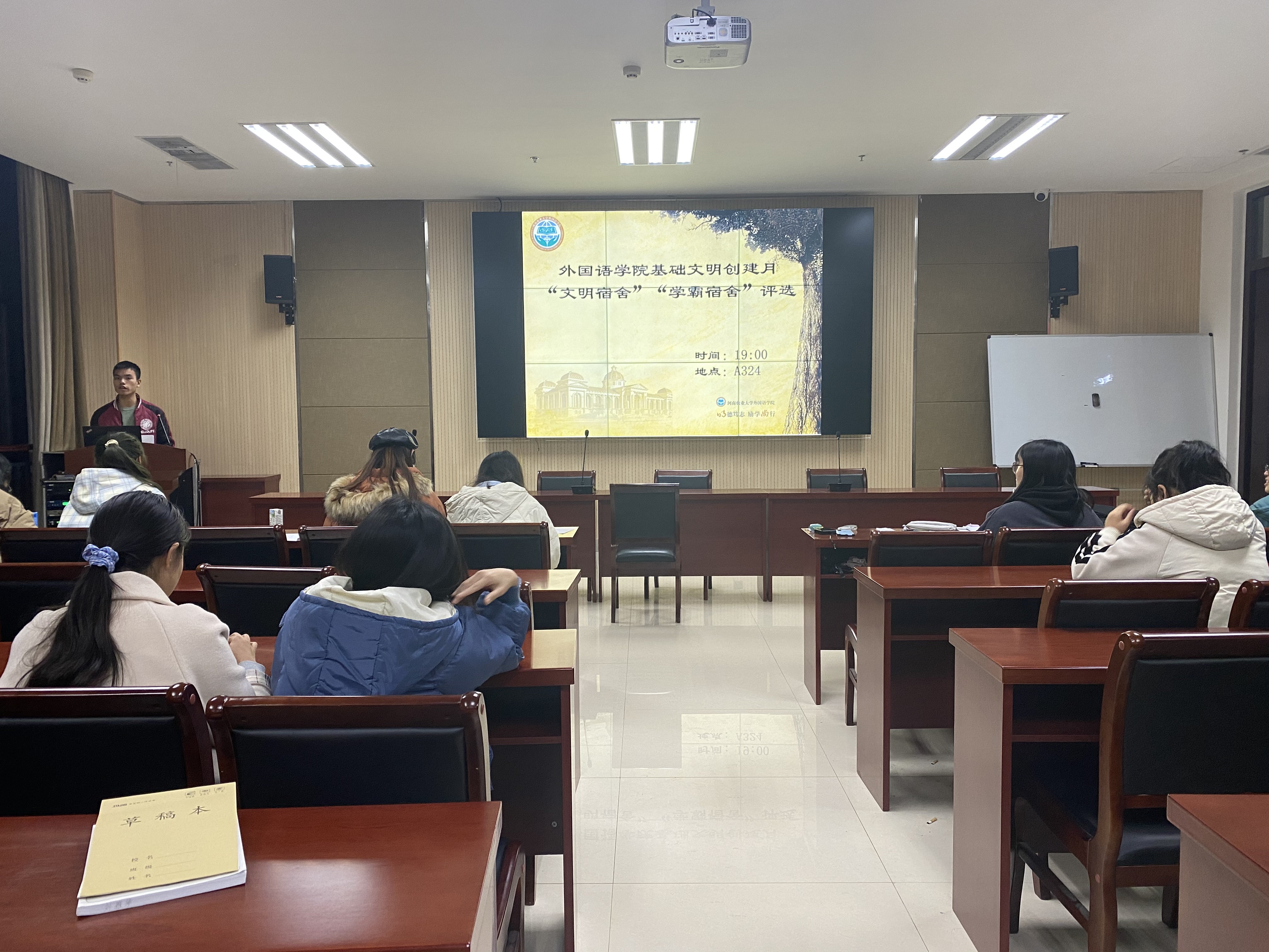 于龙子湖校区繁塔楼A324会议室举办“学霸宿舍”暨“百佳文明宿舍”评选大赛。成人频道