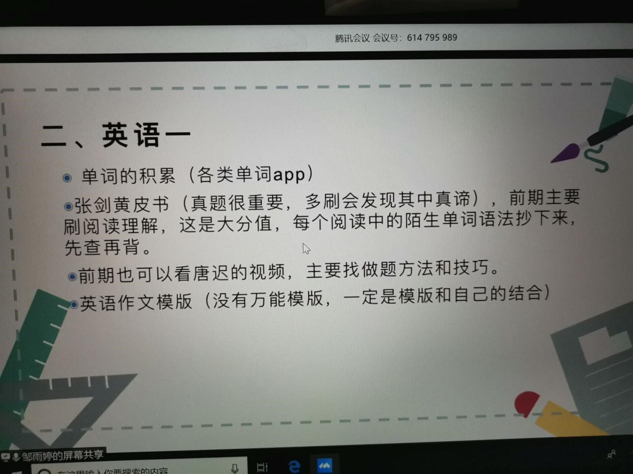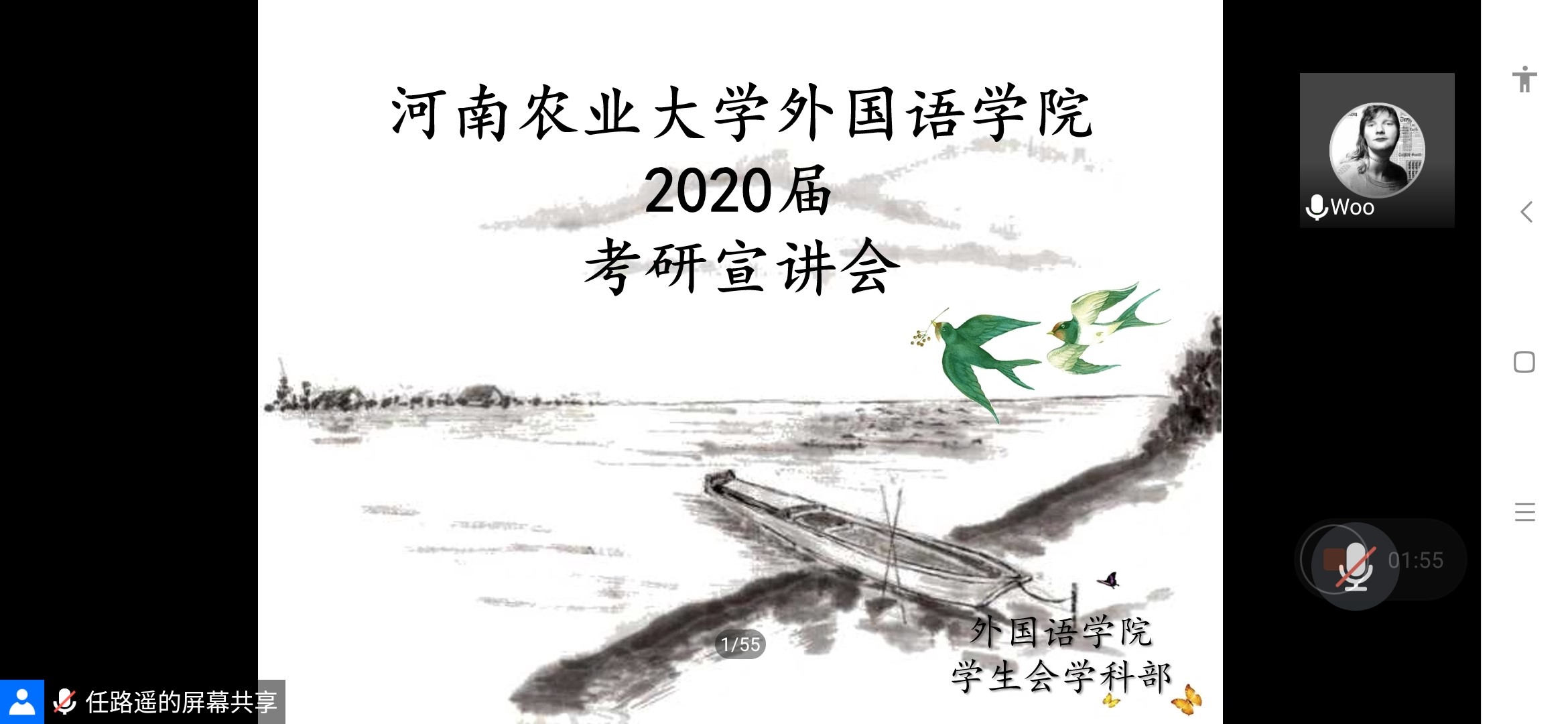 利用腾讯会议举办了线上考研宣讲会。本次宣讲会邀请了学院七位2020年考研优秀学生代表,各年级学生积极参与了本次宣讲会。