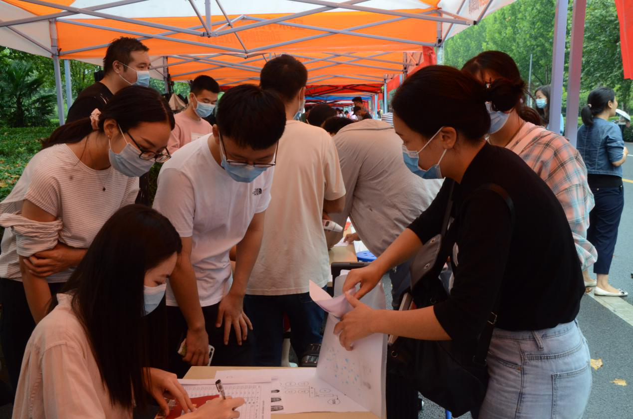 志愿者和老师们在岗位上热情细心地引导新生完成报到流程,并耐心地介绍疫情期间成人频道