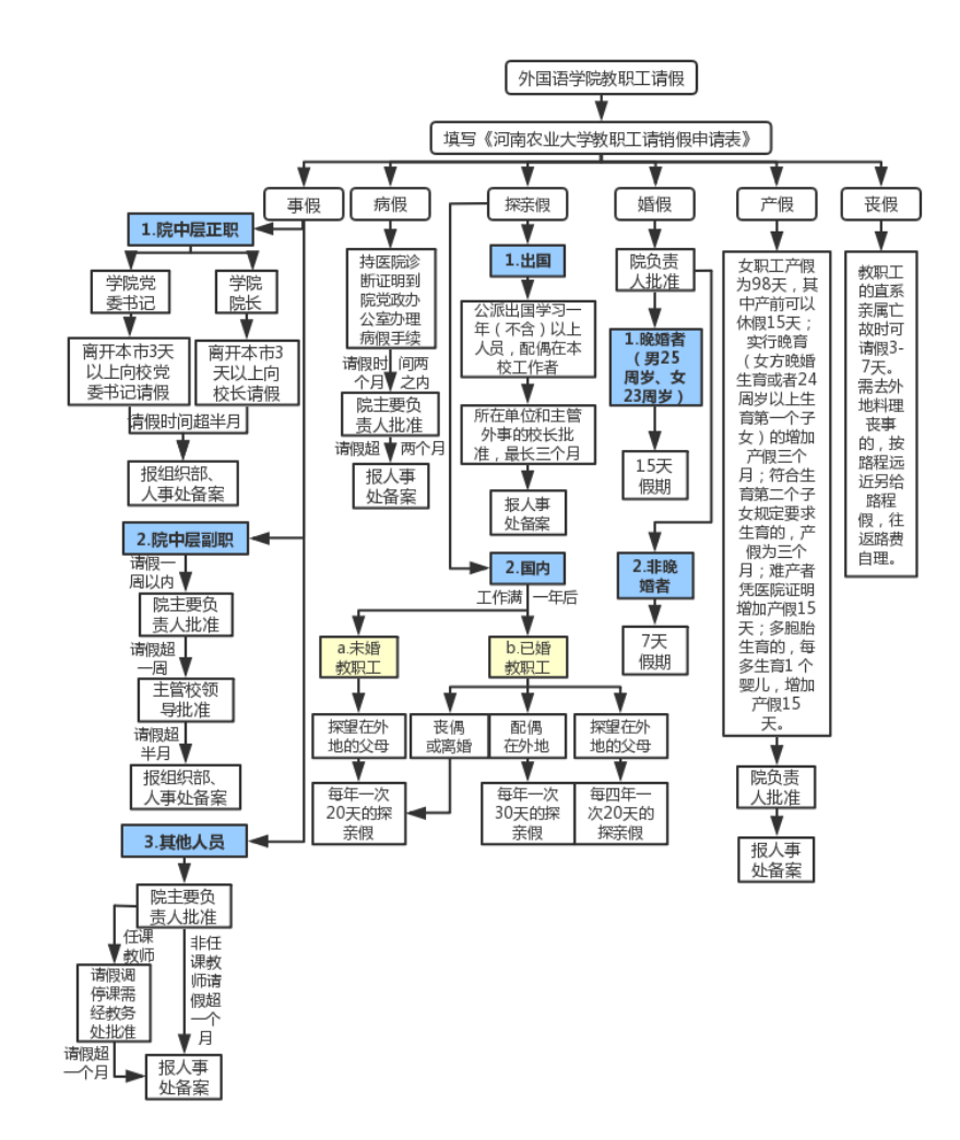 注:1.所有教职工请假,严格按照《成人频道 教职工考勤和请假暂行规定(校政人[2015]31号)》。